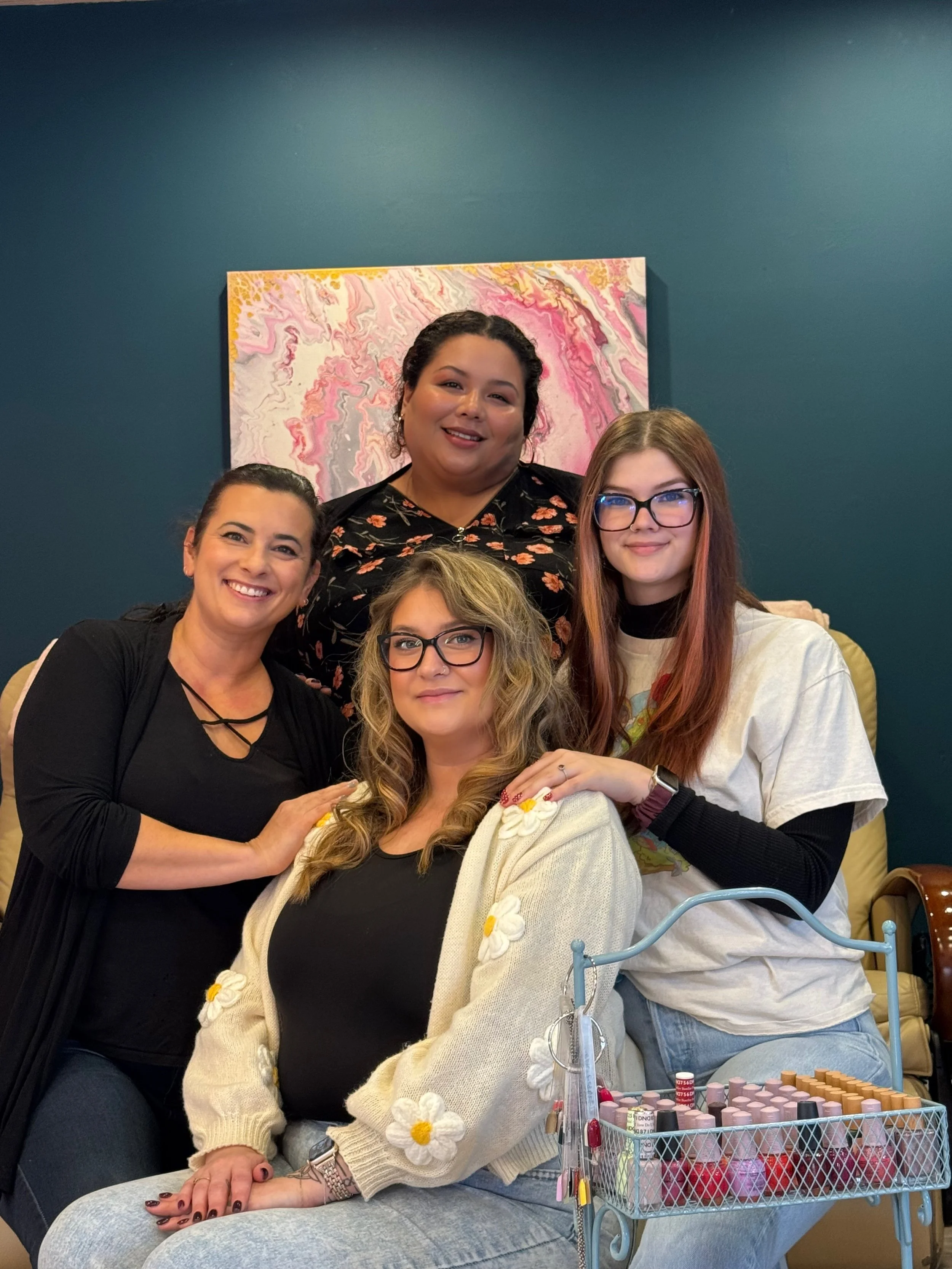 Our services include Manicures, Pedicures, Lash Extensions, and Facial Waxing, all provided in a cozy, uplifting atmosphere.